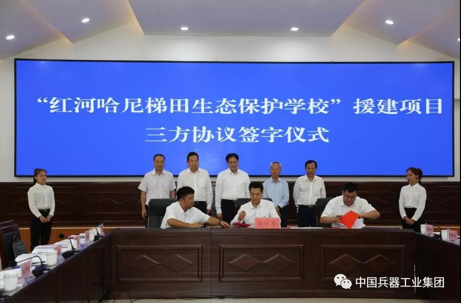 會(huì)上,兵器工業(yè)集團(tuán)、中國扶貧基金會(huì)和紅河縣簽署了“紅河哈尼梯田生態(tài)保護(hù)學(xué)?!痹?xiàng)目三方協(xié)議。