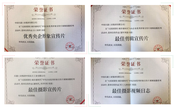 本次展播活動分設(shè)形象宣傳片、員工視頻日志兩個賽道,從中央企業(yè)報送的2600余部作品中,評選出了“優(yōu)秀央企形象宣傳片”、“最具大國精神宣傳片”和“央企員工優(yōu)秀視頻日志”等十二個種類、120部優(yōu)秀作品,中國兵器工業(yè)集團4部作品獲獎。