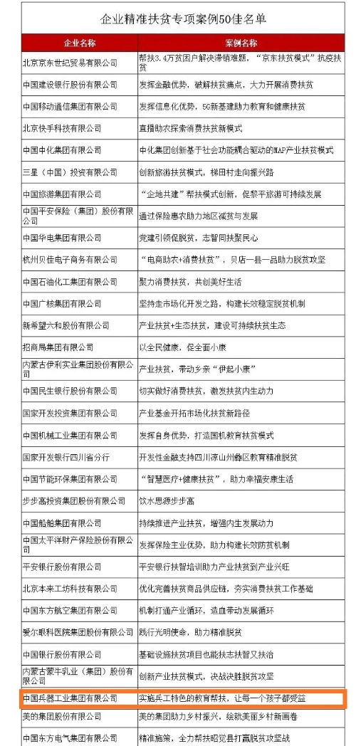 兵器工業(yè)集團(tuán)教育扶貧獲評(píng)國(guó)務(wù)院扶貧辦2020年企業(yè)精準(zhǔn)扶貧專項(xiàng)案例“50佳”