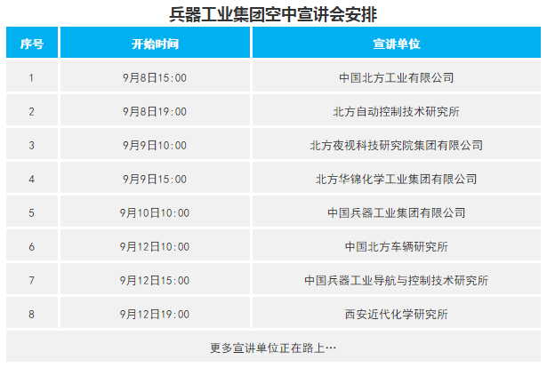 兵器工業(yè)集團(tuán)空中宣講會(huì)安排