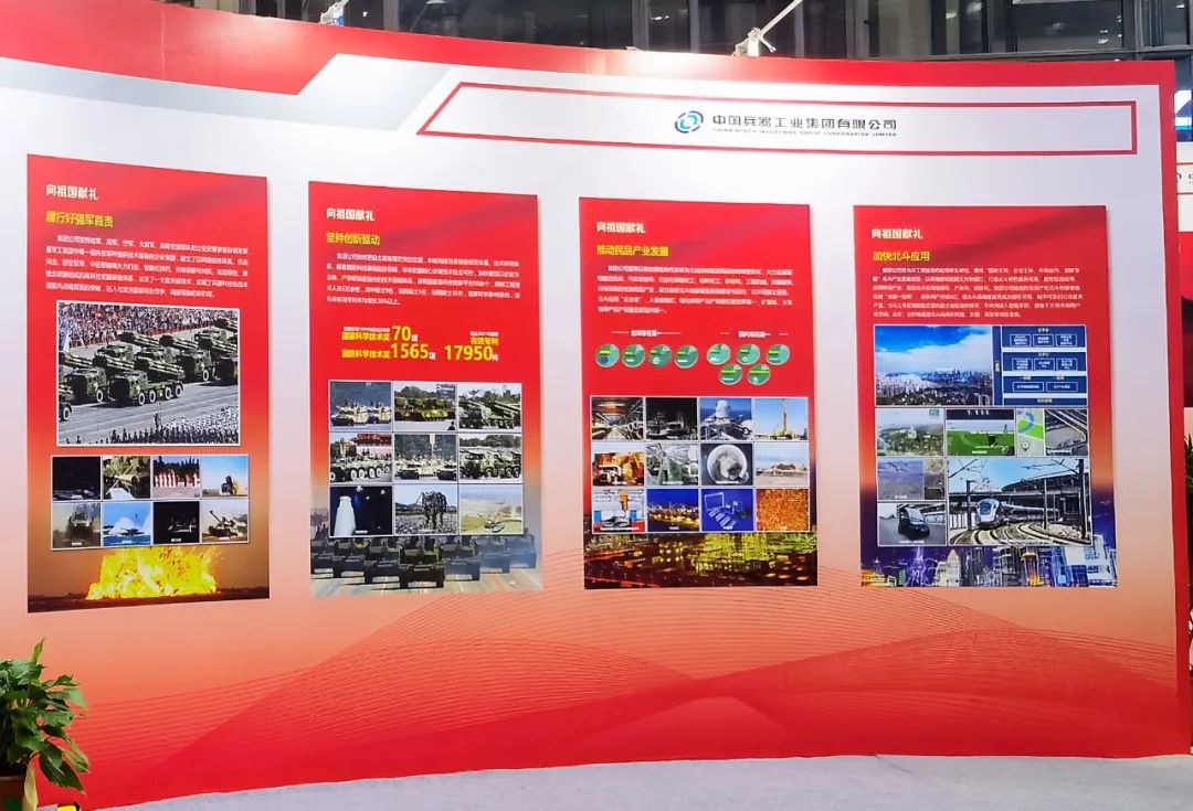 中國兵器工業(yè)集團(tuán)有限公司所在展位按照“1+6”的主題格局進(jìn)行布展,組織北方公司、兵器一院、北斗院、光電集團(tuán)、信息院集團(tuán)、一機(jī)集團(tuán)、北重集團(tuán)、北方車輛集團(tuán)、武重集團(tuán)、北奔重汽、豫西集團(tuán)、淮海集團(tuán)和西北工業(yè)集團(tuán)13家單位參加國防郵電產(chǎn)業(yè)專題展區(qū)(1號(hào)館)展示。其中,“1”代表集團(tuán)公司總體情況,“6”分別代表六大主題:大國工匠主題、大國重器主題、職工創(chuàng)新成果主題、向祖國匯報(bào)主題、“一帶一路”主題、產(chǎn)業(yè)前瞻主題,總布展面積約590平米。