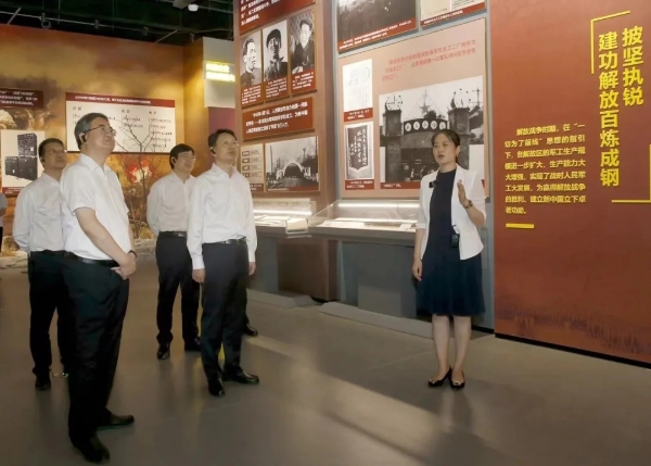 座談會(huì)前,程福波一行參觀了“挺起民族的脊梁——黨領(lǐng)導(dǎo)的人民軍工”展館。